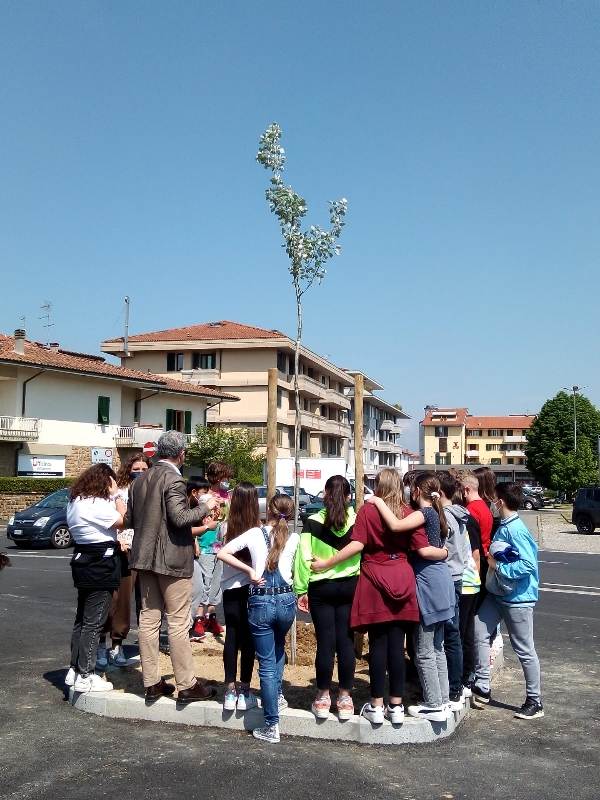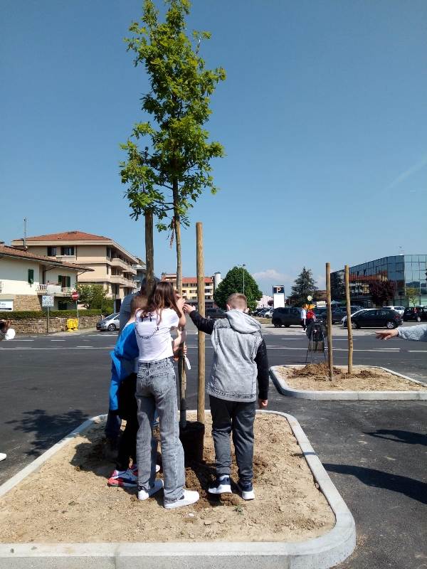 Un frassino, una quercia, un pioppo bianco, un ontano nero, un carpino bianco e un acero campestre sono i sei alberi donati dal Rotary di San Miniato che sono stati messi a dimora, questa mattina, dagli alunni e dalle alunne delle classi prime della scuola secondaria di primo grado di Ponte a Egola, nelle aiuole di piazza Guido Rossa. L'iniziativa, in collaborazione con il Comune di San Miniato e con l'Istituto Comprensivo "Buonarroti", si è svolta alla presenza del sindaco Simone Giglioli, della presidente del Rotary Chiara Bilanceri, della preside Graziella Costanzo e di Andrea Bernardini botanico e naturalista, direttore del Consorzio Forestale delle Cerbaie.