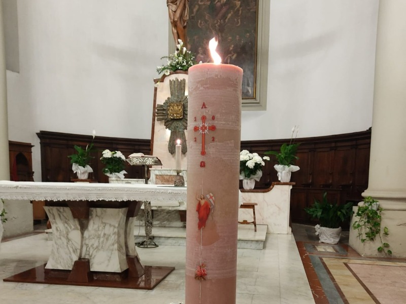 Il cero, che ha dimensioni da record, era stato acceso lo scorso 9 aprile alla marcia per la pace nel mondo organizzata a Cerreto Guidi (Fi) dall'Associazione Nazionale Città dei Presepi. Per l'occasione era stata prelevata dal santuario francescano di La Verna una fiamma accesa nel luogo dove San Francesco ricevette le stimmate durante una apposita cerimonia a cui parteciparono Stefano Mattii, Aldo Cerofolini e Fabrizio Mandorlini in rappresentanza di Terre di Presepi. Perchè Sauro Innocenti è un presepista da sempre e da quindici anni è una delle anime del presepe lungo fiume di Pescia (Pt) oltre a svolgere da sempre molte attività a servizio delle famiglie più bisognose della sua parrocchia a Chiesina Uzzanese dove il cero è stato acceso la notte dalla notte di Pasqua.