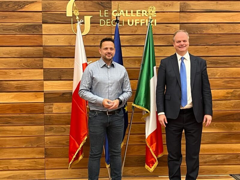 Il sindaco di Varsavia Rafał Trzaskowski oggi in visita alla Galleria degli Uffizi. Accompagnato dal direttore Eike Schmidt e dalla funzionaria dell'Ufficio Mostre del museo Laura Mori, il primo cittadino della Capitale polacca ha molto ammirato non solo le opere del Rinascimento italiano, ma anche i ritratti nella serie gioviana degli Uffizi dei re polacchi Sigismondo I, Stefano I, Jan Sobieski, dell'umanista Jan Zamoyski e del condottiero Stanislaw Jablonowski. Il tour è durato oltre due ore.