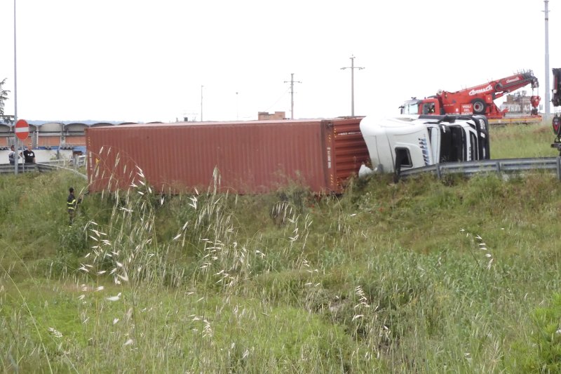 Il tir venendo da San Donato avrebbe imboccato la rotatoria, costruita su una pendenza in discesa, e al momento di svoltare per entrare nella Sgc in direzione Firenze si è ribaltato. Soccorsi sul posto, chiamati a intervenire anche i vigili del fuoco.