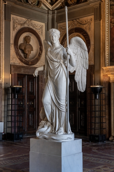 La città di Firenze accoglie La Pace di Antonio Canova, la celebre versione in gesso del marmo custodito all’interno del Museo Nazionale Khanenko di Kiev e attualmente nascosto per tutelarlo dai bombardamenti della guerra tra Russia e Ucraina. Il modello in gesso della Pace di Canova trova ospitalità nel cuore di Palazzo Vecchio, e diventa un mezzo per assicurare la contemplazione del capolavoro dello scultore, altrimenti negata dal conflitto. L’evento assume un’ulteriore risonanza artistica e politica in quanto va a confrontarsi a poca distanza di metri con la grande tela di Pellizza da Volpedo, Il Quarto Stato, esposta da pochi giorni nel Salone dei Cinquecento.