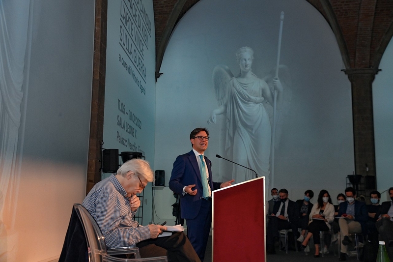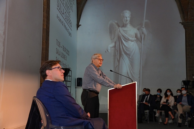 “La Pace di Kiev, proveniente dal Museo Gypsotheca Antonio Canova di Possagno, è ora a Firenze, e qui, temporaneamente, attende tempi di pace” commenta Vittorio Sgarbi, curatore della mostra. “Canova, l’ultimo grande artista che ha chiuso l’arte dell’Occidente ha unito tutto, non ha diviso. Canova è un grande conciliatore di ogni conflitto, di ogni differenza, e in nome della sua Pace io chiedo a voi di invocarla tutti insieme sul piano di spirito del mondo, perché il mondo si salvi”.