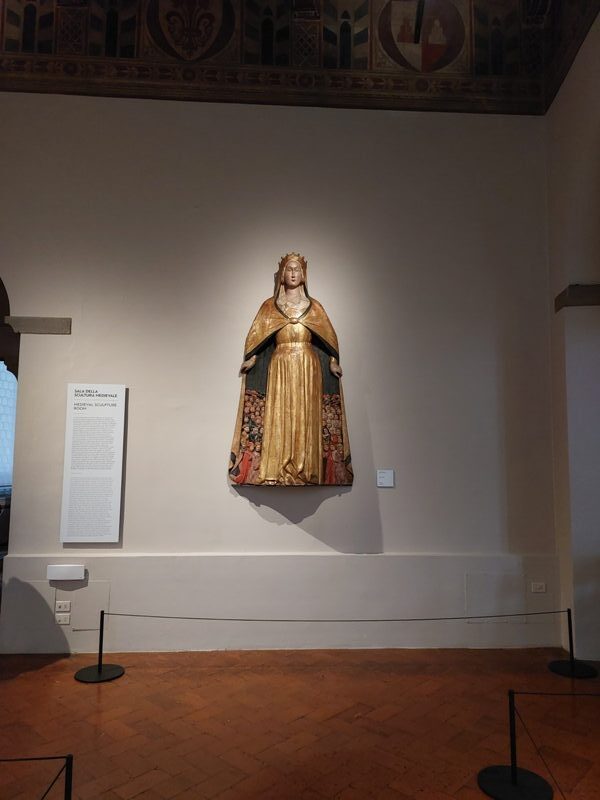 “Nella sala si è ordinata una selezione coerente di sculture principalmente toscane, e spiccatamente fiorentine, tra Due e Trecento, cercando di equilibrare nell’allestimento le esigenze storiche ed estetiche – ha spiegato Benedetta Chiesi, funzionaria storica dell’arte -. Il nuovo nome, “Sala della Scultura Medievale”, tiene ben presenti le due anime del Museo: una prettamente civica e di scultura di grande formato, l’altra di taglio più europeo, dedicata alle arti suntuarie del Medioevo. Questa sala è, per tema e per posizione nel percorso del museo – e ora anche per il suo allestimento – una cerniera tra le due anime del Bargello, introducendo da un lato al Salone di Donatello e dall’altro comunicando con la Sala degli Avori e quella Carrand”.