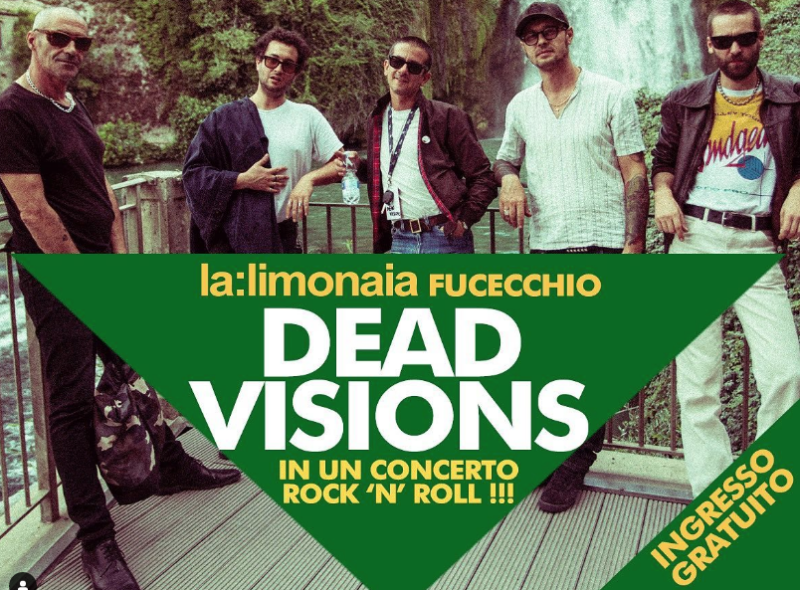 Venerdì 13 maggio arrivano i Dead Visions, "un concerto rock 'n roll' come pubblicizzato nella locandina del locale di Parco Corsini. Sul palco del live club fucecchiese ecco Francesco Mandelli, attore, sceneggiatore, scrittore e conduttore qui nella veste di cantante. Mandelli va a unirsi ai toscani Cesar P. Bigelow, Federico Giammattei, Carlo Alberto Maria Rossi e Sergio Innocenti, rispettivamente alle due chitarre, al basso e alla batteria. Apertura alle 21, inizio concerto alle 23.