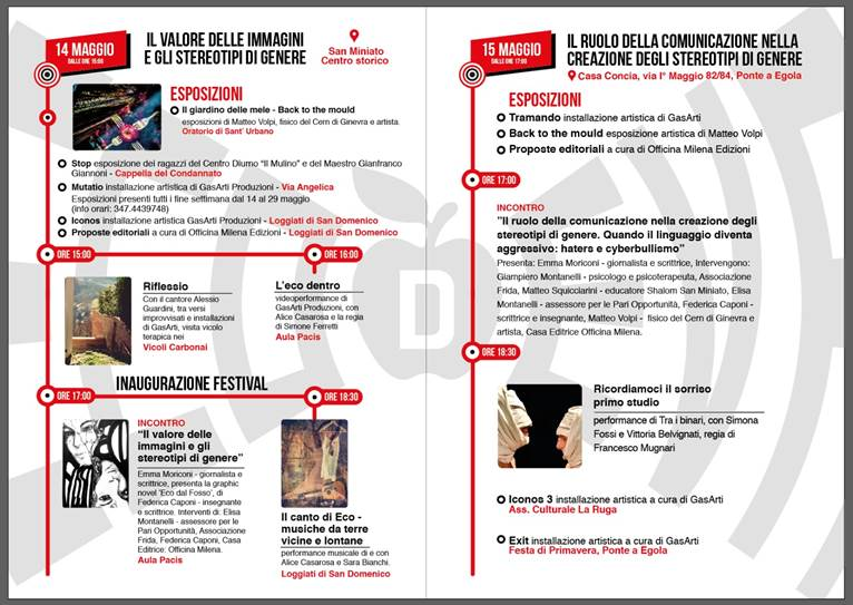 Sabato 14 maggio 2022 si alza il sipario su ' , la rassegna dedicata all’abbattimento degli stereotipi di genere, organizzata dall’associazione GasArti, e ispirata alla graphic novel “Eco dal fosso” di Federica Caponi, in collaborazione con l’assessorato alle Pari Opportunità e quello alla Cultura, inserita nel cartellone delle iniziative della Festa della Toscana, sostenuta dalla Regione Toscana. Il primo weekend si svolgerà il 14 e 15 maggio mentre il secondo sarà il 28 e 29 maggio con la conclusione del festival.