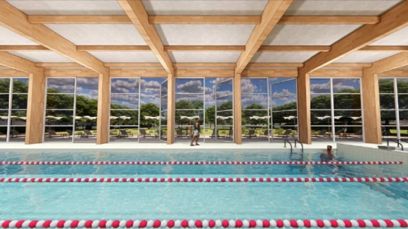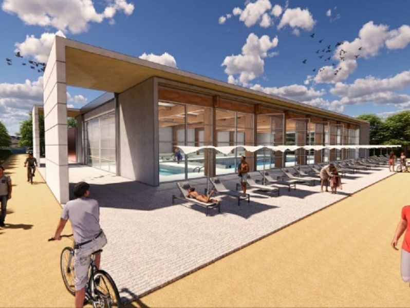 - Rendering della piscina coperta di Peccioli