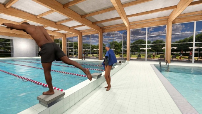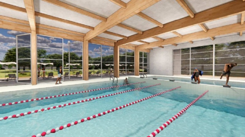 - Rendering della piscina coperta di Peccioli