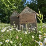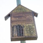 I BEE HOTEL. Hanno dimensioni 44 X 28 (base) X 6,5 cm, colore rovere e/o castagno chiaro. I materiali utilizzati sono naturali: legno massello di abete, multistrato di pioppo; compensato di pioppo; canna domestica (arundo donax); tronchetti di legno varie essenze (erica arborea, cerro etc.) e rete metallica con maglia quadra. Saranno forniti e disposti nell’area di posizionamento delle casette anche 18 cartelli per spiegare ai visitatori, lo scopo del progetto e le finalità degli hotel per le api.