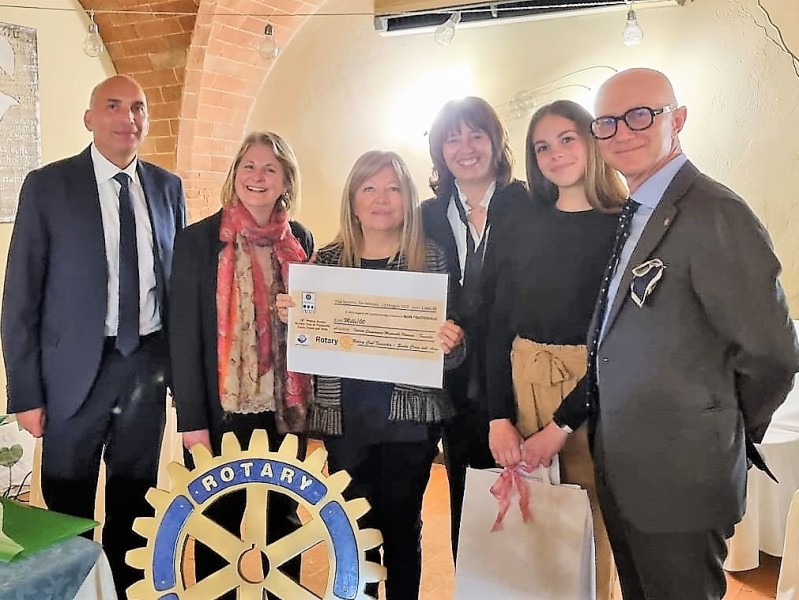 Il Rotary Club ha consegnato l'assegno da 1000 euro nelle mani della professoressa Luciana Caponi. I fondi, assegnati alla scuola grazie al tema della studentessa Innocenti, saranno utilizzati per l'acquisto di un'attrezzatura didattica, sulla quale sarà impresso il logo del Rotary Club in ricordo dell'iniziativa.