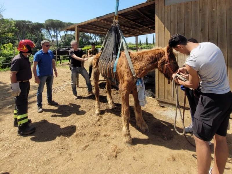 In un maneggio di via di Tramontana a Livorno quest'oggi i vigili del fuoco del comando provinciale hanno prestato soccorso a un cavallo che non riusciva a rialzarsi da terra da diverso tempo. Questa mattina alle 10 l'animale è stato imbracato e sollevato con l'autogru, dato il peso del cavallo. Il personale veterinario è rimasto presente finché l'equino non ha ripreso completamente le forze, così da poter togliere le briglie.