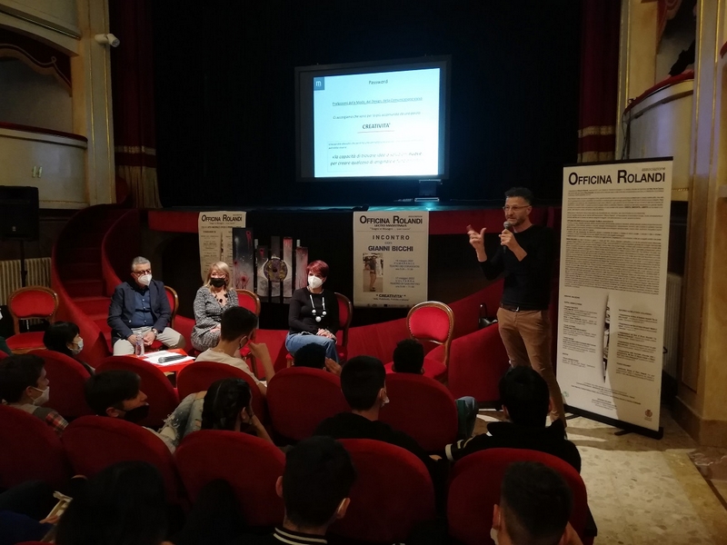 Se nella prima Lectio dell’8 aprile 2022 in cui, il due volte Campione di ciclismo, Paolo Bettini ha parlato di "TRAGUARDI! Leadership e Lavoro di Squadra" ha incantato i ragazzi parlando della propria esperienza di vita dedicata allo sport, nella seconda, tenutasi sabato 14, Gianni Bicchi, Pomarancino DOC oggi responsabile del coordinamento didattico e Docente di Fenomenologia delle Arti Contemporanee dell’Accademia Modatech, ha stimolato i ragazzi sul tema “Password: CREATIVITA’ “