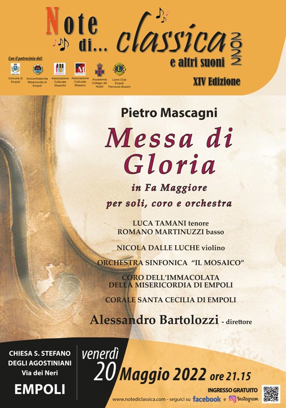 Il concerto chiude la kermesse "Note di…classica e altri suoni 2022", quattordicesima edizione, promossa dall’associazione Mosaico, con il patrocinio di Comune di Empoli Lions Club Empoli Ferruccio Busoni, Accademia Collegio de’ Nobili, Associazione Culturale MusicArt, Arciconfraternita Misericordia di Empoli.