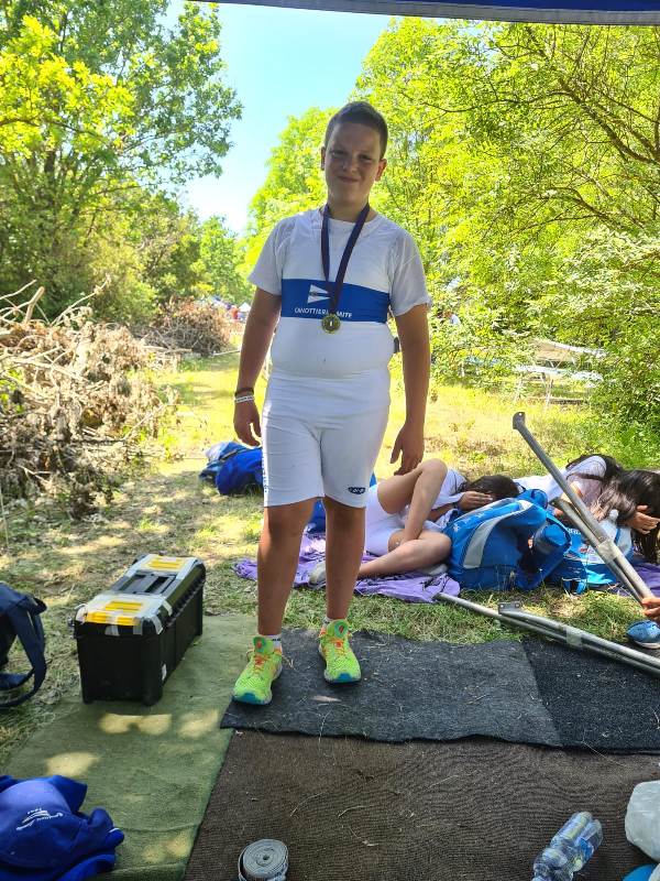 La domenica inizia subito bene con lo skiff cadetti di Lorenzo Scaffi che dopo una gara tirata fino alla fine la seconda piazza del podio e la medaglia d’argento.