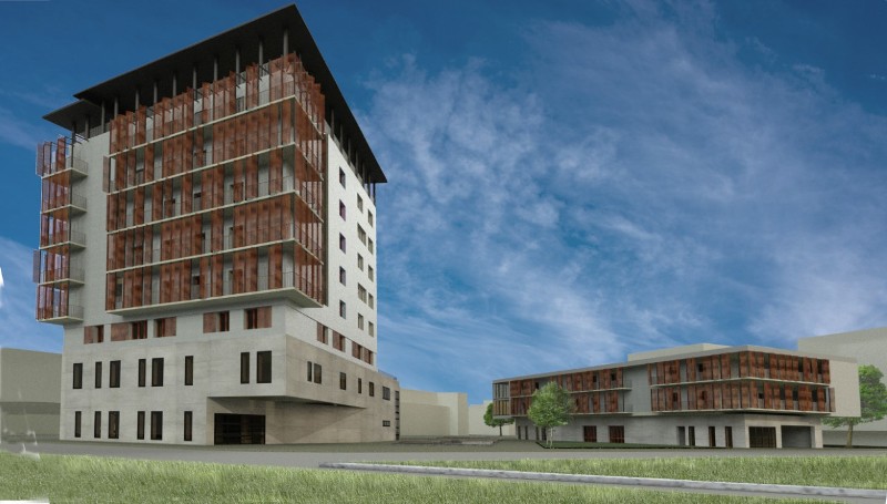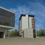 Il progetto prevede la realizzazione di due edifici, il primo a torre (edificio A) e il secondo in linea (edificio B), destinati a ospitare gli alloggi per gli studenti e gli spazi comuni di socializzazione, con la demolizione degli edifici attualmente presenti nell’area. L’edificio A si svilupperà su otto piani, con servizi collettivi al piano terra e al primo piano e aree giorno/cucina ai piani superiori, dove sono collocate le camere singole, doppie e i mini alloggi, ciascuno dotato di servizi igienici; l’edificio B si svilupperà invece su tre piani, con al primo e secondo piano le camere singole e doppie e i servizi collettivi concentrati al piano terra. I mini alloggi saranno dotati di soggiorno con cucina privata; per le camere singole e doppie sono invece previste cucine collettive attrezzate. Ogni cucina sarà corredata di spazi per il relax e la socializzazione.