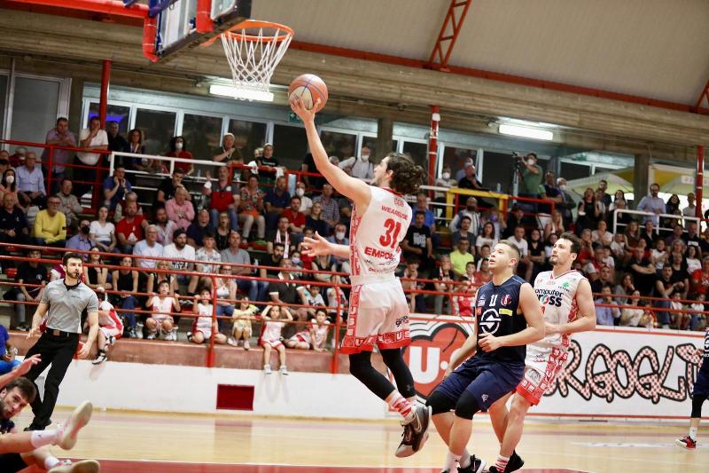 È proprio su questo che i biancorossi costruiscono la loro splendida vittoria che, si badi bene, non chiude certo i giochi per la salvezza ma sicuramente li indirizza. La mano dello 'spirito Use' è poi quella di Pianegonda con sette punti consecutivi quando c'è da rimetterla in piedi o quella di Sesoldi che suona la tromba della cavalleria col canestro che apre l'ultima frazione o, anche stasera come in gara uno, quella di Antonini che, magari con l'aiuto dall'alto di Santa Liberata, la patrona della sua Cerreto, vede la tripla decisiva ballonzolare sul ferro e poi finire dentro.