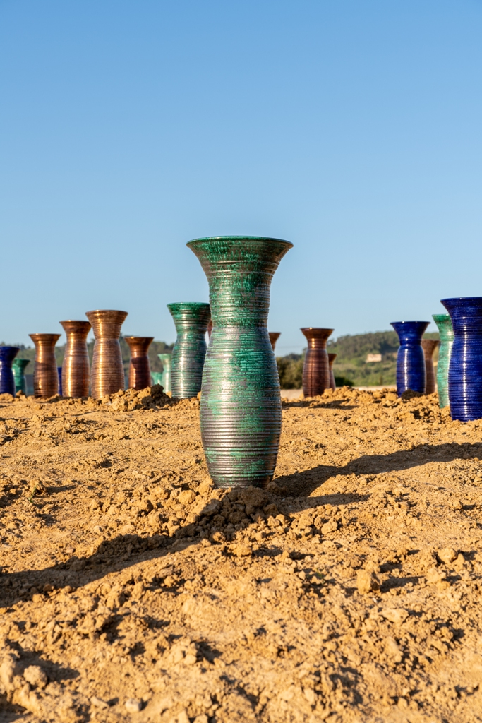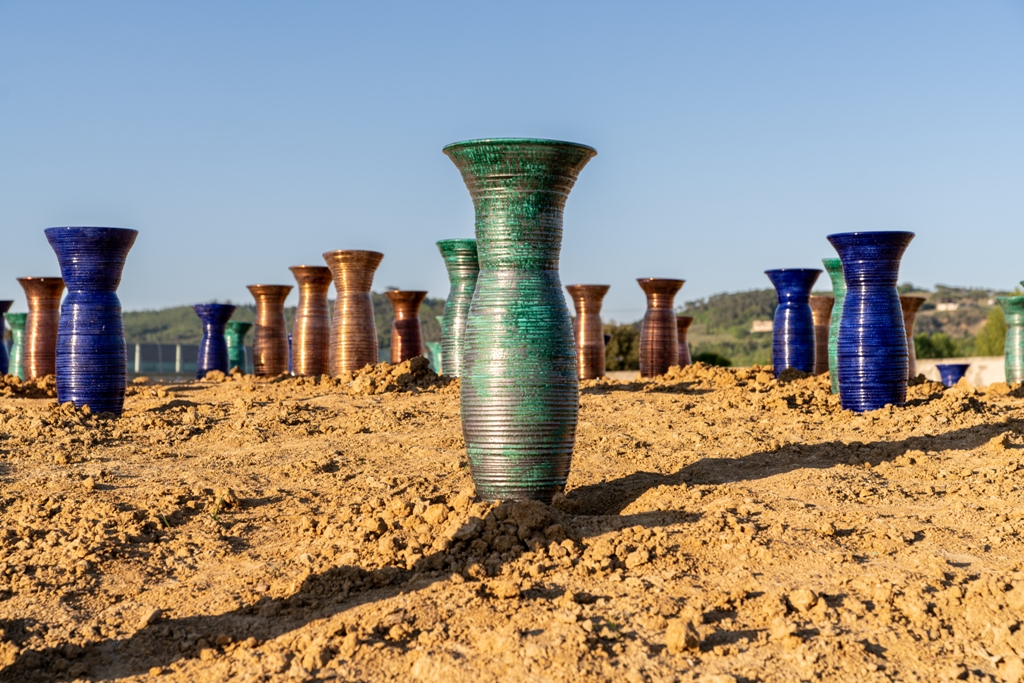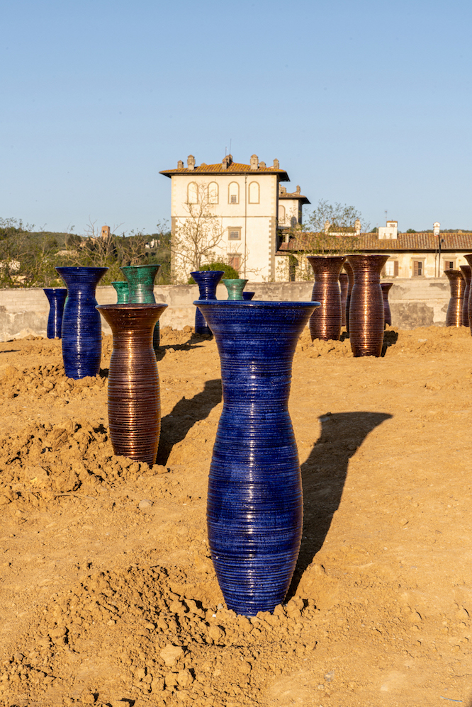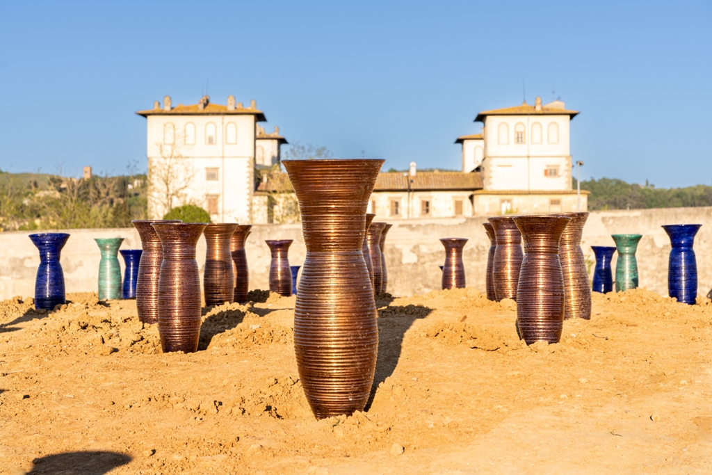 L'opera di Marco Bagnoli ha un'origine lontana: sorge nell’immaginario dell’artista nel 2010, dopo un viaggio in Iran e passa attraverso gradi di trasformazione. Se nella prima creazione, pensata per il giardino del Padiglione Italiano di Auroville (città indiana nata dalla visione del filosofo e mistico Sri Aurobindo) sono le piante a circondare una fontana che sta al centro, nella sua evoluzione pensata per il giardino ad Isfahān, in Persia, già i vasi sostituiscono le piante.