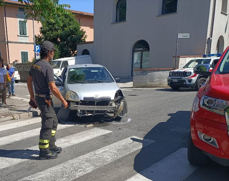 Scontro tra una utilitaria e un mezzo dei vigili del fuoco tra via Cavour e via San Tommaso a Santa Croce sull'Arno questa mattina. Non ci sono stati feriti nell'incidente avvenuto poco dopo le 10 di questa mattina. La vettura, una vecchia Yaris, ha colpito frontalmente il lato dell'autopompa dei vigili del fuoco. Sul posto la polizia municipale di Santa Croce. La conducente 74enne della vettura ha rifiutato il trasferimento in pronto soccorso offerto dalla Misericordia di Castelfranco, in quanto le ferite non erano gravi.