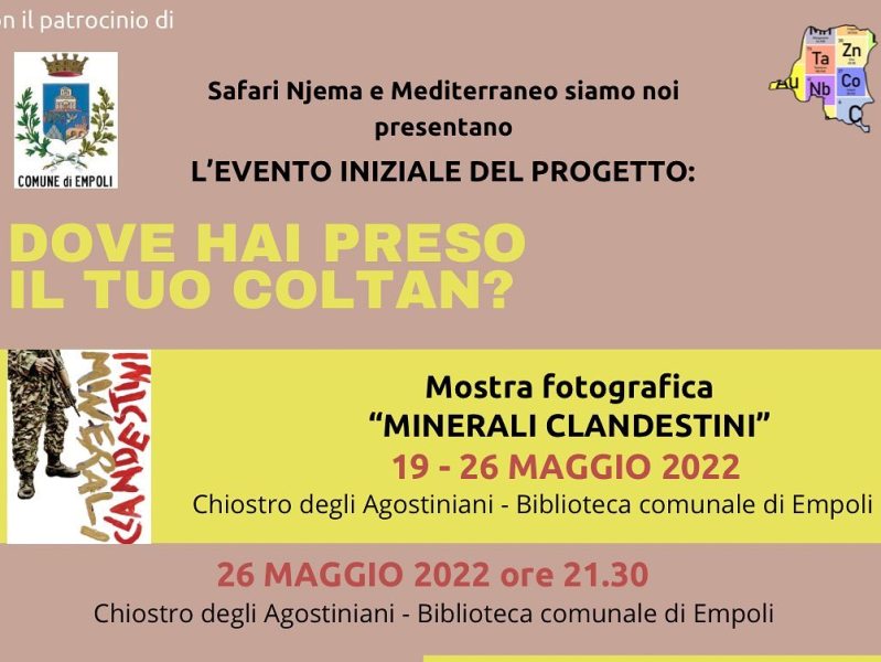 La partenza è prevista per il 26 maggio da Empoli. In quell'occasione, alle 21.30 un incontro al Cenacolo degli Agostiniani sui minerali di conflitto. All'evento parteciperà Brenda Barnini, sindaca di Empoli, Odette Mbuyi, attivista congolese, Alice Pistolesi, giornalista dell’Atlante delle guerre e dei conflitti e Paola Galgani, segretaria della Camera del lavoro di Firenze.