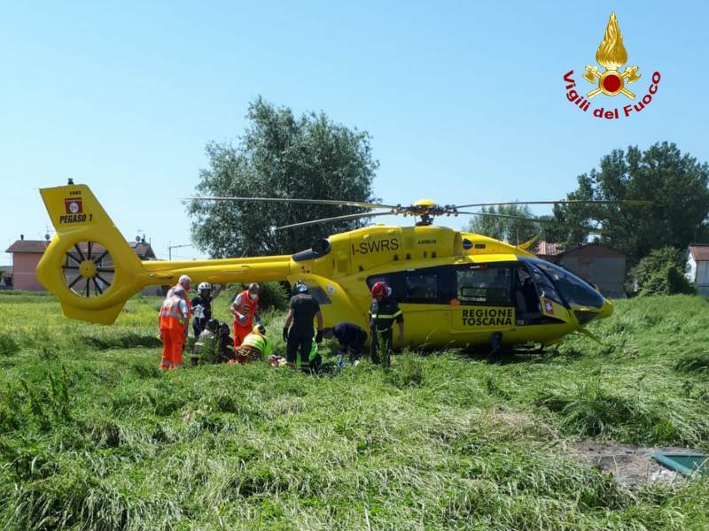 Complesse e delicate le operazioni che hanno permesso al personale dei vigili del fuoco, in collaborazione con il personale dell'automedica, di liberare l'infortunato affidato poi ai sanitari del 118 per il successivo trasporto all'ospedale Cisanello di Pisa con l'elisoccorso Pegaso. Sul posto anche la Polizia Municipale del Comune di Chiesina Uzzanese.