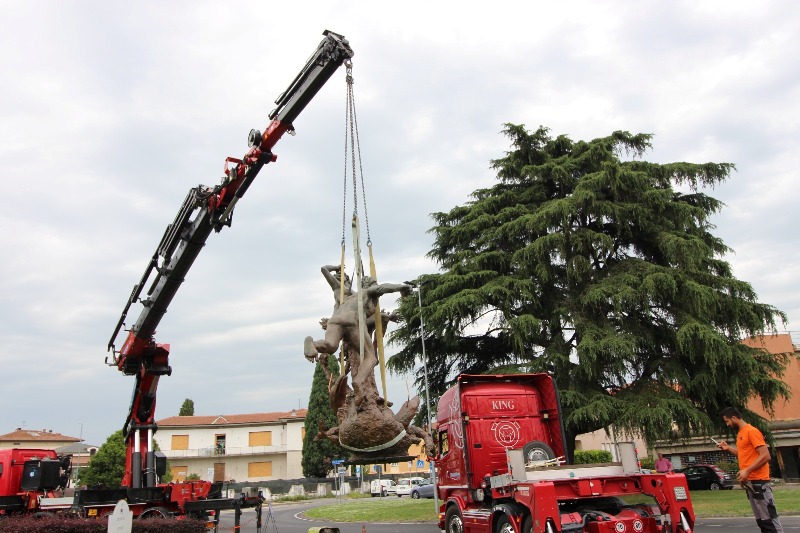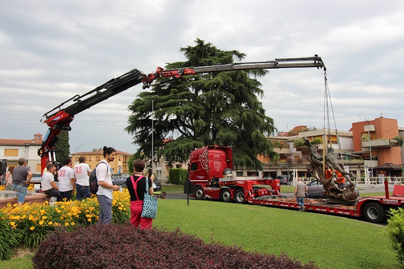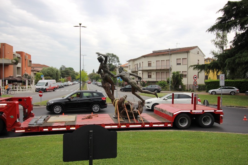 È stata ricollocata stamattina (26 maggio) al centro della fontana di piazzale Italia la statua di Apollo e Dafne, rimossa agli inizi del mese di marzo per essere sottoposta ad un intervento complessivo di restauro.