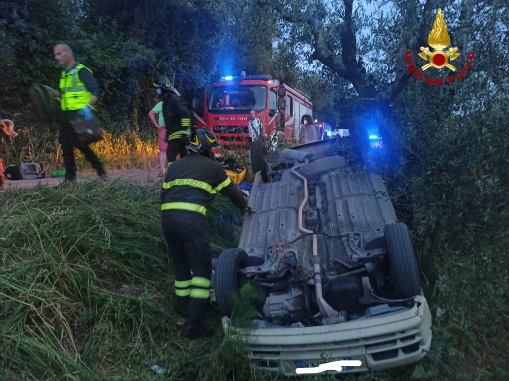 Alla guida un uomo di 55 anni è uscito fuori strada capovolgendosi e rimanendo incastrato all'interno della propria auto. La squadra dei vigili del fuoco di Montecatini, assieme al personale dell'automedica di Montecatini Terme, ha provveduto a estrarre l'uomo dall'abitacolo.