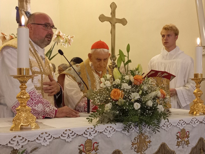 Il cardinale giungendo in Chiesa ha recitato il Santo Rosario in ginocchio davanti all’esposizione solenne del Santissimo Sacramento, non sottraendosi alle fatiche dell’età; al termine ha presieduto la solenne Santa Messa vespertina animata dal coro parrocchiale, recitando al termine la preghiera di San Michele Arcangelo del Santo Padre Leone XIII.