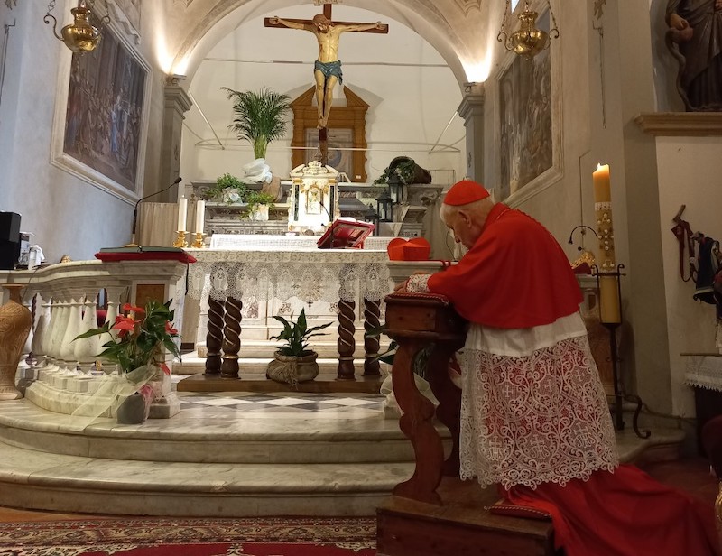 Il porporato si è poi recato al Santuario mariano di Pancole, che aveva visitato al termine di una visita a San Gimignano nel gennaio 2017 pochi mesi dopo essere stato creato cardinale. E’ stato accolto dal Rettore Padre Ennio Castellano, dai religiosi e dalle religiose dei “Servi del Cuore Immacolato di Maria”, dove ha recitato il Santo Rosario in ginocchio davanti all’esposizione solenne del Santissimo Sacramento, non sottraendosi alle fatiche degli anni ed ai postumi degli anni di prigionia, benedicendo poi all’esterno del Santuario la campagna ed i tanti fedeli presenti. Al termine ha poi assistito alla solenne Santa Messa animata dalle suore, recitando la preghiera di San Michele Arcangelo del Santo Padre Leone XIII.