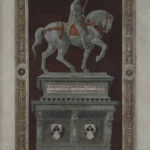Il monumento al condottiero Niccolò da Tolentino (1350 circa – 1435) ha una storia più breve e lineare. Morto nel 1435, si ha testimonianza di una grande folla alle sue esequie a cui partecipò anche Papa Eugenio IV. Venti anni dopo, nell’ottobre del 1455, la Signoria di Firenze delibera di onorare la memoria del condottiero con un monumento in Duomo conferme “in modo e forma” a quello dell’Acuto, che sarà terminato l’anno successivo come da pagamento conclusivo registrato dall’Opera di Santa Maria del Fiore, per una cifra di 24 fiorini. Dei tempi così stretti tra la progettazione del monumento dipinto e la sua esecuzione fanno pensare ad una particolare attenzione della Signoria, forse motivata dai rapporti di amicizia in vita tra Niccolò da Tolentino e Cosimo il Vecchio.  Andrea del Castagno aveva già lavorato per l’Opera nel 1444 come fornitore di cartoni per le vetrate, nel 1446 per aver dipinto un giglio e due spiritelli sull’organo del Duomo e poi un Agnus Dei e per la doratura dello stesso strumento.