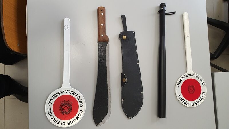 Provoca un incidente danneggiando quattro veicoli e in auto la Polizia Municipale trova un machete e uno sfollagente. E per il neopatentato scatta la denuncia. Il sinistro è avvenuto la settimana scorsa in piena notte in via dei Cioli. La pattuglia arrivata sul posto si è trovata di fronte a un’auto ribaltata e quattro veicoli in sosta danneggiati. Sia il conducente che il passeggero della vettura ribaltata, entrambi 19enni, sono stati portati in ospedale. Il conducente è risultato positivo all’etilometro (0,8 grammi/litro) e ai cannabinoidi. Come neopatentato è scattato il ritiro della patente da 4 a 8 mesi (con percorso di recupero con visite e analisi mediche periodiche), la sanzione per la velocità non commisurata alle ore notturne raddoppiata (344 euro), il fermo per 180 giorni del veicolo e la segnalazione Prefettura come consumatore di sostanze stupefacenti