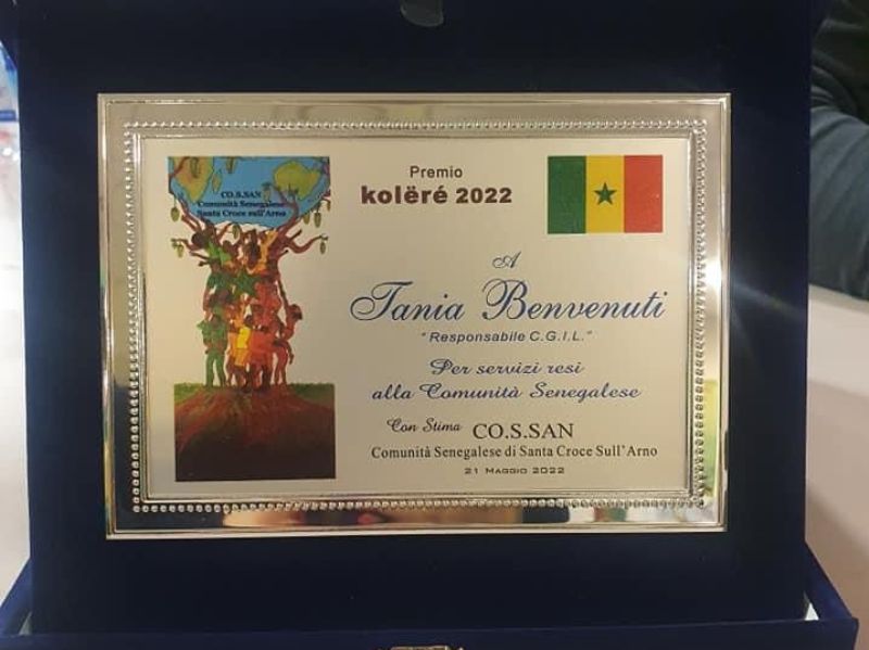 Dopo gli interventi dell’assessora Braccini e del Dirigente dell’Istituto Banti, dott. Imperatrice, il presidente di Cossan ha assegnato il premio "Kolërè" alla "miglior" cittadina di quest'anno, ossia Tania Benvenuti della CGIL. Per l’associazione è stata ed è la voce dei senza voce, si è distinta per la sua perseveranza a difendere le giuste cause sia nel mondo del lavoro che fuori. Non usa mai mezzi termini per denunciare l'uso improprio del potere da qualsiasi parte essa proviene. E infine ha, da sempre, combattuto dalla parte della comunità senegalese di Santa Croce contro gli attacchi ingiustificati diretti a quest'ultima.