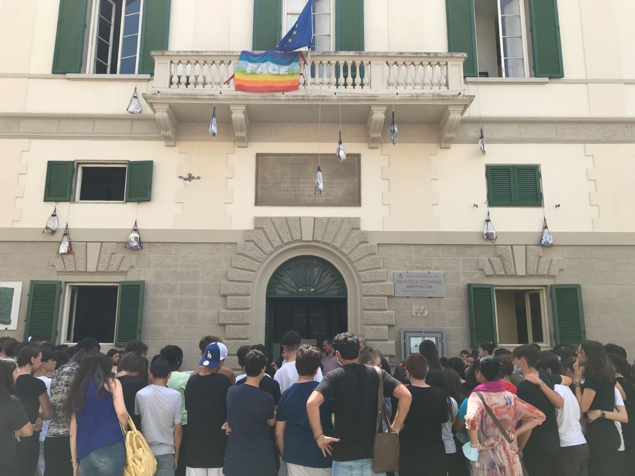 C’è qualcosa di nuovo sulla facciata della Biblioteca Comunale Adrio Puccini: sono una decina di zainetti trasparenti, pieni di oggetti, che pendono dalle finestre e dal balcone, e si sentono delle voci passando, voci di ragazze e ragazzi che leggono incessantemente un elenco di oggetti. Si tratta di una installazione che da mercoledì 8 giugno è visibile in Largo Delio Nazzi, lo spazio pedonale antistante la Biblioteca Comunale, che raccoglie i lavori fatti dalle ragazze e dai ragazzi delle quattordici classi seconde e terze delle scuole medie di Santa Croce sull’Arno e Staffoli. Sono il risultato finale del progetto che il Tavolo della Memoria e l’Istituto Comprensivo hanno pensato insieme in occasione del 3 ottobre, Giornata nazionale in memoria delle vittime dell’immigrazione. Le classi che hanno aderito hanno iniziato a lavorare al progetto nel mese di ottobre scorso, affrontando la lettura collettiva del libro di Francesco D’Adamo “La Traversata”. Poi ogni classe si è cimentata nella preparazione di uno zaino con gli oggetti ritenuti necessari per affrontare una traversata dopo un incontro propedeutico curato dagli educatori dei Servizi Educativi comunali.