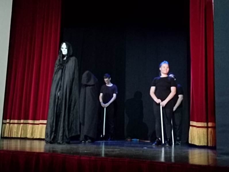 I ragazzi dell'Happy Theatre, coordinati da Corrado e Nicola, hanno messo in scena una pièce "a cartoline" di teatro di figura, dimostrando ottime capacità espressive fra gli applausi dei compagni, professori e genitori presenti.
