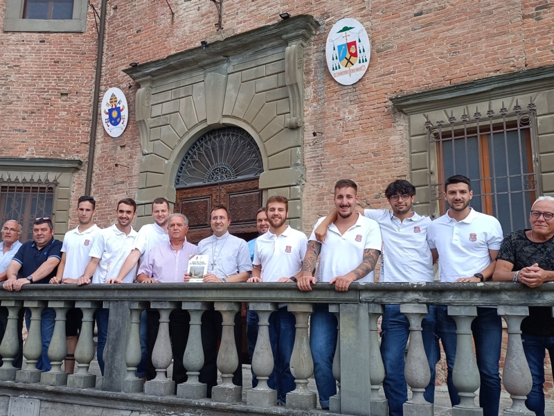 Visita di una delegazione della squadra dell'Ac San Miniato calcio, vincitori del campionato di prima categoria girone B con l'approdo in promozione dopo oltre 50 anni, allo splendido palazzo vescovile della Diocesi di San Miniato, dove sono stati ricevuti dal vescovo S.E. Mons. Andrea Migliavacca, che ha fatto i complimenti per la vittoria del campionato all'ultima giornata ai dirigenti, allo staff tecnico e ai giocatori intervenuti e un caloroso augurio in vista della prossima stagione calcistica, dove ha dichiarato, che sarà presente a vedere alcune partite casalinghe dei rossoblù.