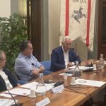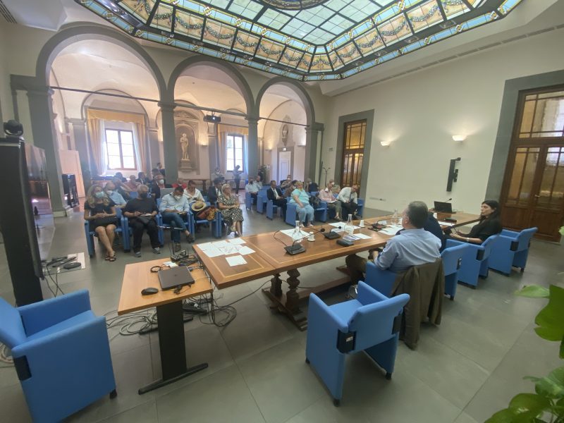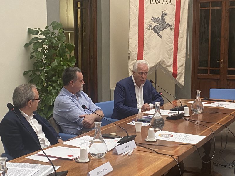 Simone Porzio, Responsabile Dipartimento Ambiente e Territorio Cgil Toscana; Eugenio Giani, presidente Regione Toscana; Monia Monni, Assessora all’Ambiente, Economia circolare Regione Toscana; Nicola Perini, Presidente Confservizi Cispel; Simonetta Poggiali, Segretaria Funzione Pubblica Cgil Toscana; Luca D’Onofrio, Presidente Federconsumatori Toscana; Fausto Ferruzza, Legambiente Toscana; Maurizio Brotini, Segretario Cgil Toscana