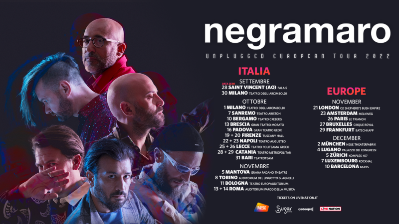Live Nation è lieta di comunicare il raddoppio della data di Firenze (19 e 20 ottobre, Tuscany Hall di Firenze) dell’attesissimo Unplugged European Tour 2022 dei Negramaro.