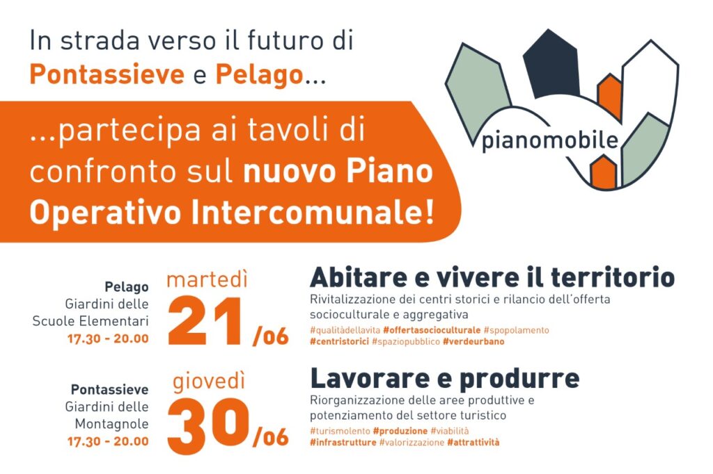 Concluso questa prima parte la postazione del PianoMobile torna ad incontrare la cittadinanza e si apre nuovamente con due tavoli tematici per confrontarsi e costruire in maniera condivisa delle indicazioni per il nuovo Piano Operativo Intercomunale