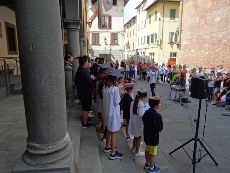 "Quest’anno è stata una gioia doppia veder esibire bambine e bambini davanti il Palazzo Comunale – hanno commentato il sindaco Gabriele Toti e l’assessora alla Cultura Chiara Bonciolini -. In primis, la possibilità di realizzare nuovamente nelle classi i laboratori di musica, che è un elemento per nulla scontato, dopo il lungo periodo di pandemia e di limitazione a questo tipo di attività. A questo si è aggiunta la scelta di far cantare ai ragazzi voci dei brani che sono da sempre simboli e messaggi di pace. Uno strumento di coinvolgimento molto potente per educare i più piccoli alla pace e per trasmettere loro valori positivi, proprio adesso che un conflitto bellico è scoppiato così vicino a noi".
