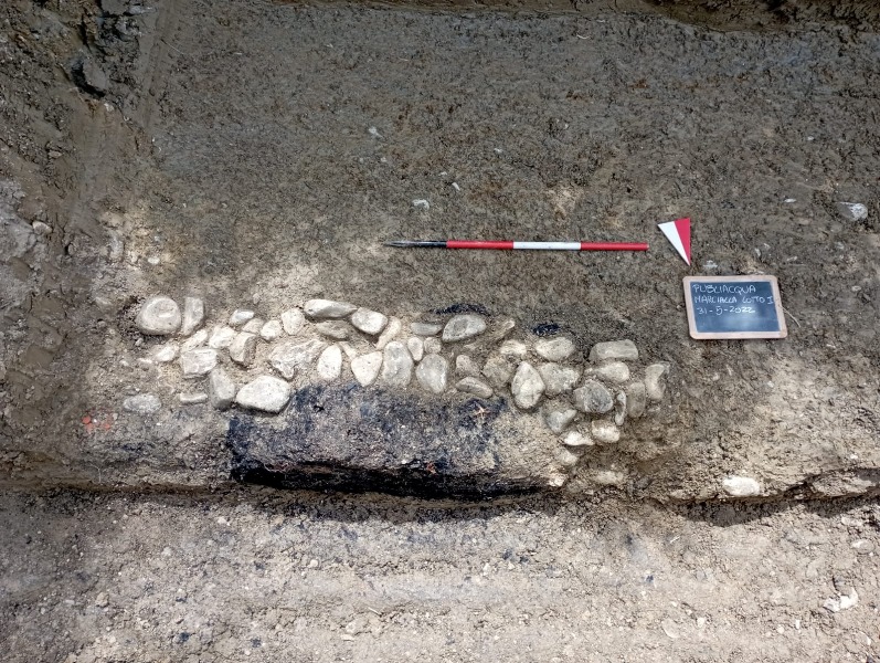“Una delle particolarità, non molto diffuse, - continua il dottor Bueno - è la regolarità di questa fossa che, rivestita da un paramento in ciottoli dal profilo quadrangolare, sembrerebbe denotare una particolare attenzione dedicata al ritiro funebre da coloro che si insediarono in quest'area, laddove analoghe sepolture sono più banalmente caratterizzate da una fossa dal profilo irregolare". Grazie all'assistenza archeologica predisposta dalla Soprintendenza, in relazione al ritrovamento, i lavori acquedottistici si sono potuti svolgere senza subire alcuna battuta d'arresto.