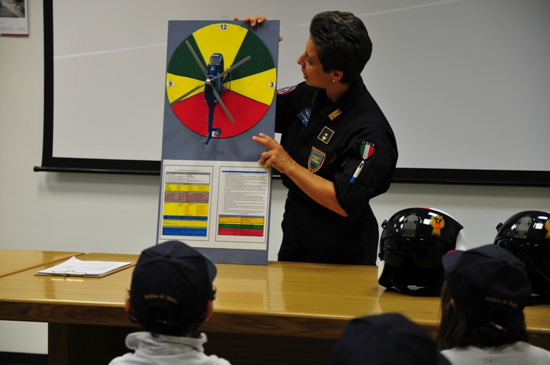 Tra le informazioni di Sicurezza più importanti, anche per gli insegnanti ed i genitori, il Dirigente del Reparto, parlando dei puntatori laser, ha messo in guardia i bambini sui pericoli potenzialmente permanenti di danno agli occhi causato dai fasci luminosi verdi di questi oggetti. Inoltre, se puntati verso aeromobili i puntatori laser possono creare delle condizioni di reale pericolo per la navigazione aerea nelle fasi più delicate di decollo o atterraggio.