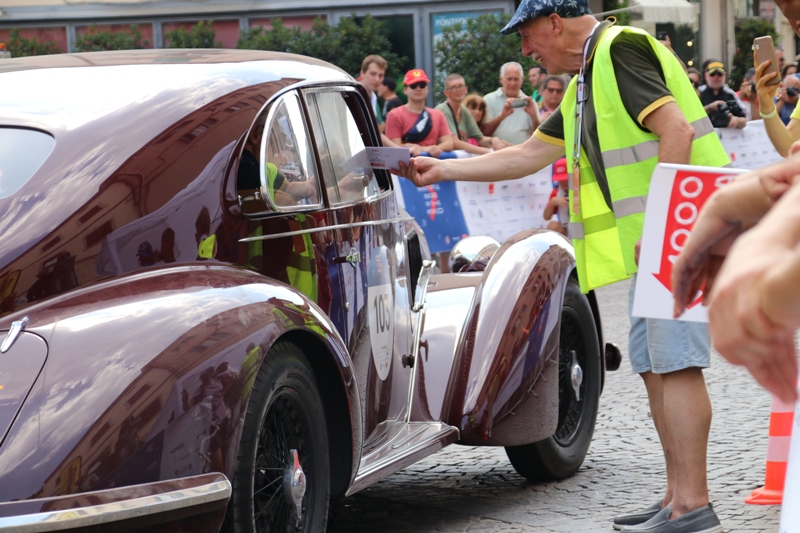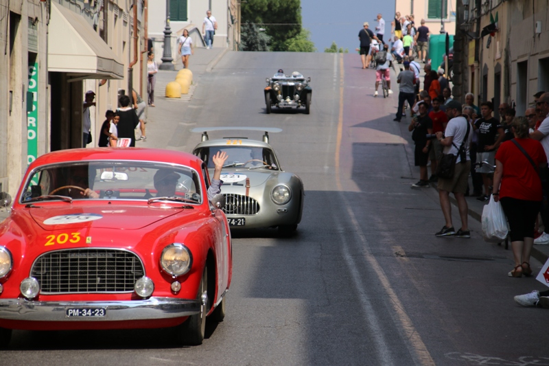 Anche Rudi Zerbi, il popolare conduttore radiofonico, si è concesso il piacere di viaggiare sulle auto d'epoca della carovana della Mille Miglia. Oggi era la tappa toscana con il tracciato da Siena a Viareggio. Tra le tappe intermedie San Miniato e Pontedera, dove abbiamo scattato alcune foto dei meravigliosi pezzi di storia dell'automobile in viaggio lungo lo stivale. Gli scatti sono a cura di Margherita Cecchin.
