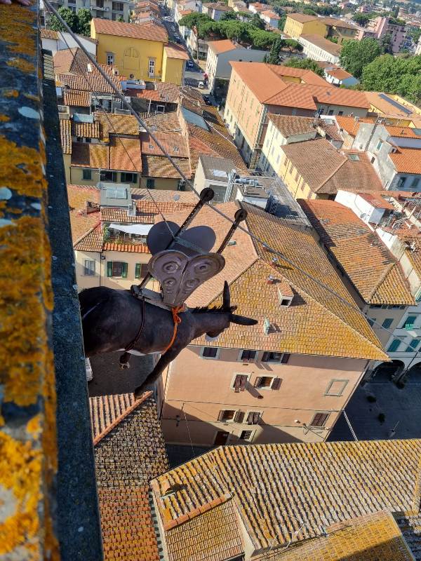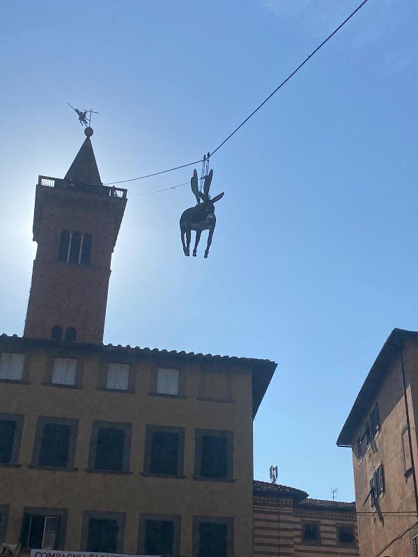 Si chiama Piscino dei Tempra il finto equino schiantato per il Volo del Ciuco di Empoli. Per chi è di zona il riferimento è chiaro e riguarda il maggior guaio degli ultimi mesi per la città: la chiusura imprevista della piscina di Serravalle per mano della società con l'alibi del rincaro dell'energia e tutto il susseguirsi di polemiche tra i lavoratori in cassa integrazione e gli utenti ancora in fase di rimborso.