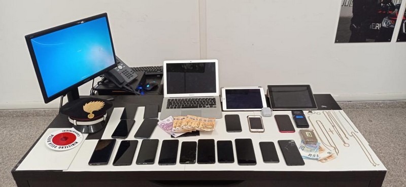 Mentre nella disponibilità del 26enne sono stati rinvenuti iphone, apple airpods, collane in oro giallo e argento, una fede in oro giallo e tre in argento, bracciale in argento, somma contante di 900 euro e una bicicletta marca "alapierre" con ruote smontate.