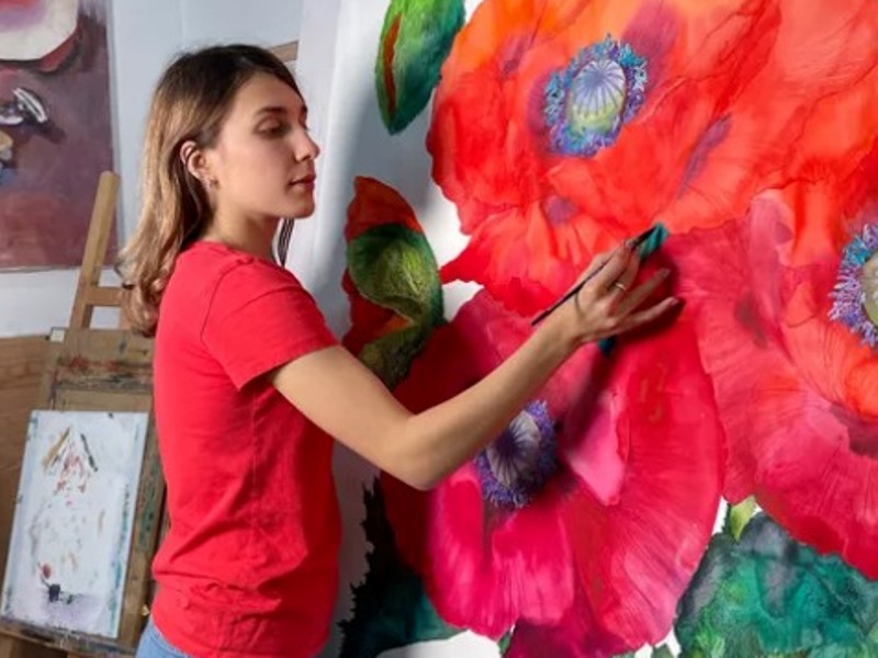 Pittrice, artista tessile di Odessa, Zhanna Pulcho, ha 25 anni e una laurea magistrale in arte. Come molte persone è stata costretta a lasciare l’Ucraina a causa della guerra. “Era spaventoso svegliarsi con il suono delle bombe, un suono che non può essere confuso con nulla”. Ora il suo sogno è di ottenere una formazione artistica in Italia.