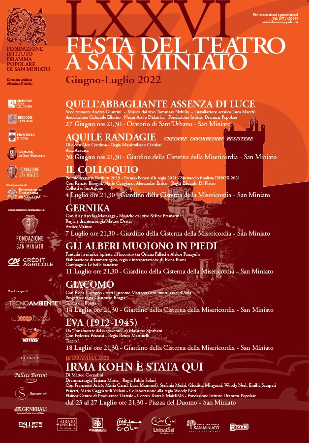 Dopo il successo nazionale con lo spettacolo 2021 di Simone Cristicchi, il Dramma Popolare è pronto a ripartire fuori dalle restrizioni della pandemia, per godere a pieno degli spettacoli che si susseguiranno in tutta San Miniato.