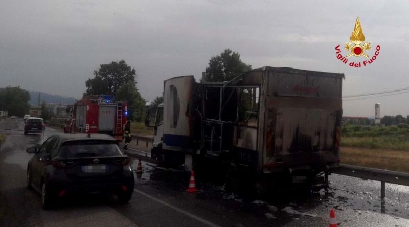 Incendio in autostrada A11 fuori dal casello autostradale di Capannori. Un camion è andato in fiamme stamani alle 7.20 e sul posto è intervenuta una squadra dei vigili del fuoco di Lucca assieme a un'autobotte. I rilievi sono stati effettuati dai carabinieri. Dopo meno di un'ora e mezzo l'intervento è stato concluso e il traffico è stato ripristinato.