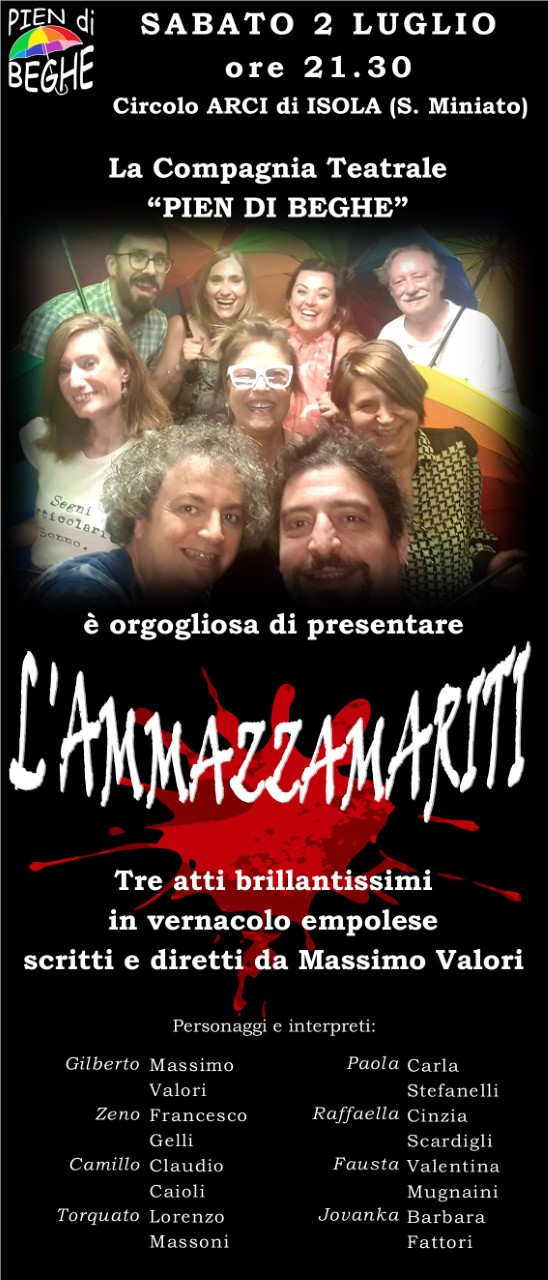 Appuntamento quindi sabato 2 luglio alle 21.30 a “Isola in festa” al circolo ARCI di Isola (San Miniato) in piazza Turati con “L’ammazzamariti” di “Pien di Beghe”. Vi aspettiamo!