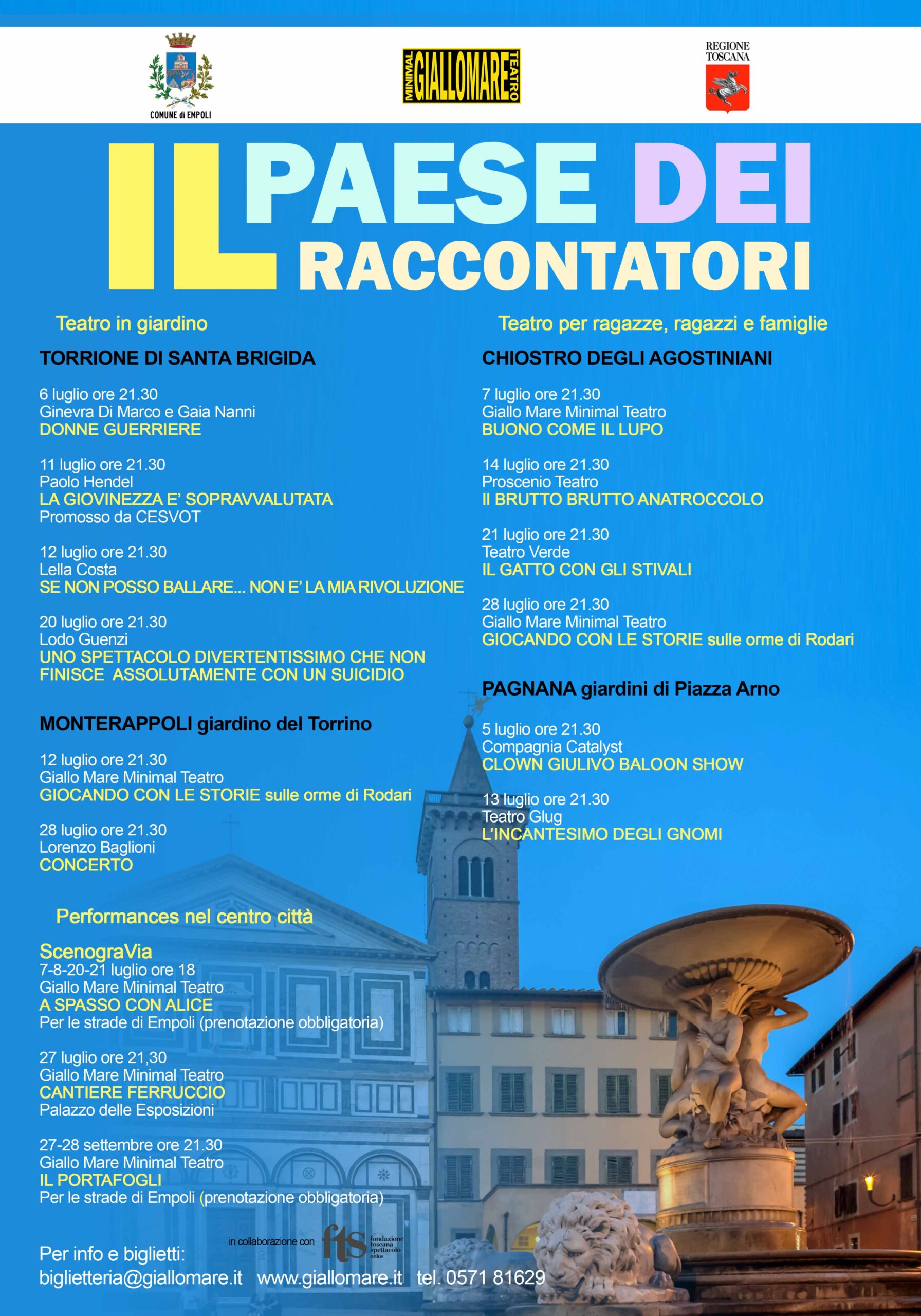 Il paese dei raccontatori manifesto Pubblicato il 27 Giugno 2022 alle 1792 × 2560 in A Empoli si esce per le sere di luglio: musica e spettacoli in centro e frazioni ← Precedente Successivo →