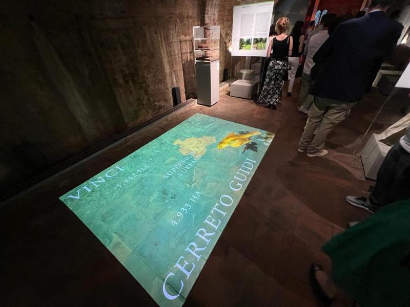 Nello Spazio espositivo, un'antica galleria ex museo del vino, si compie un viaggio nel tempo alla scoperta dell'amore del Genio per la botanica, l'enologia, le sue sofisticate intuizioni scientifiche e la storia del territorio, grazie alle carte, ai paesaggi di allora e alle mappe interattive. Nei suoi appunti, Leonardo anticipa i metodi di coltivazione che verranno e dalle sue osservazioni, oggi si può conoscere il clima della sua epoca e i sistemi di allevamento.