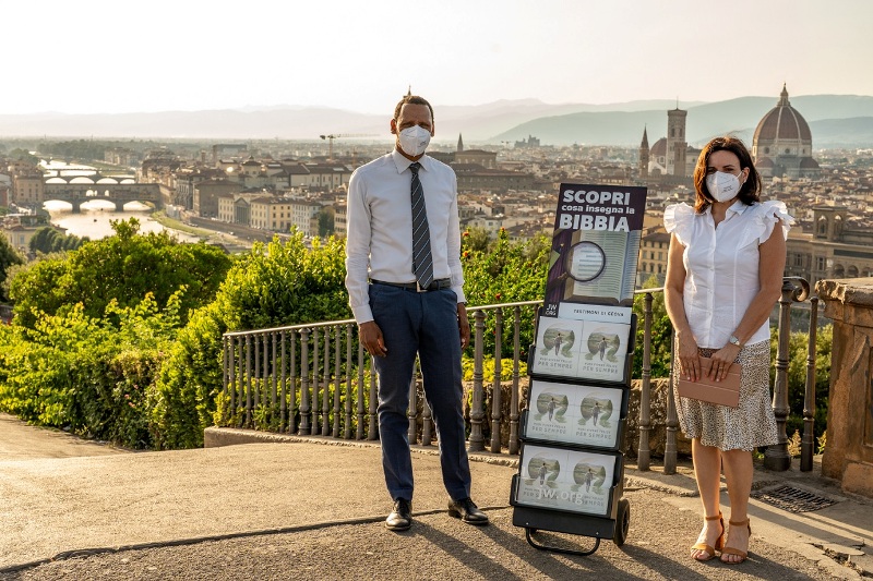 "I Testimoni di Geova di Firenze e provincia sono regolarmente presenti con gli espositori mobili, pronti a offrire pubblicazioni bibliche gratuite a chiunque ne faccia richiesta", afferma Emanuele Fogliani, portavoce dei Testimoni di Geova per Liguria e Toscana. Anche se non è più richiesto dalla legge, quando svolgono quest’opera volontaria, i Testimoni di Geova continueranno a indossare una mascherina come precauzione a tutela della salute propria e degli altri.
