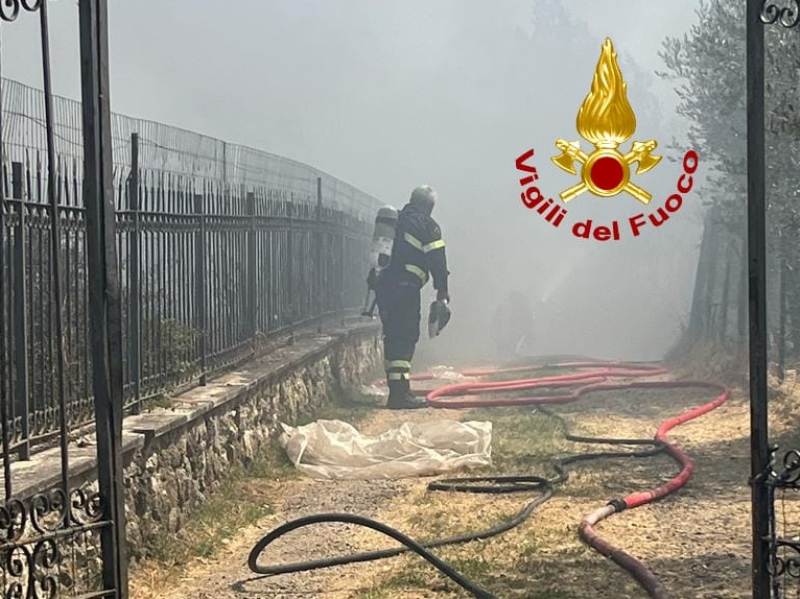 In cielo in azione anche l'elicottero Drago 124 del reparto volo di Arezzo e l'elicottero Aib della Regione Toscana, a terra invece impegnate due autobotti, due squadre e il personale volontario della Regione Toscana.
